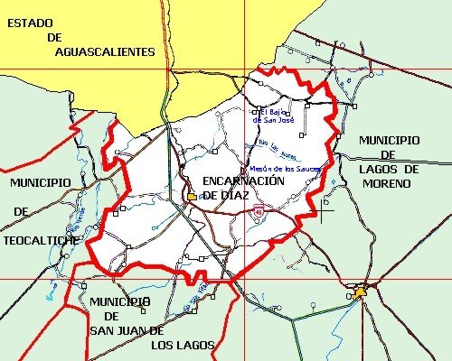Encarnación de Díaz Map Town Jalisco, Mexico