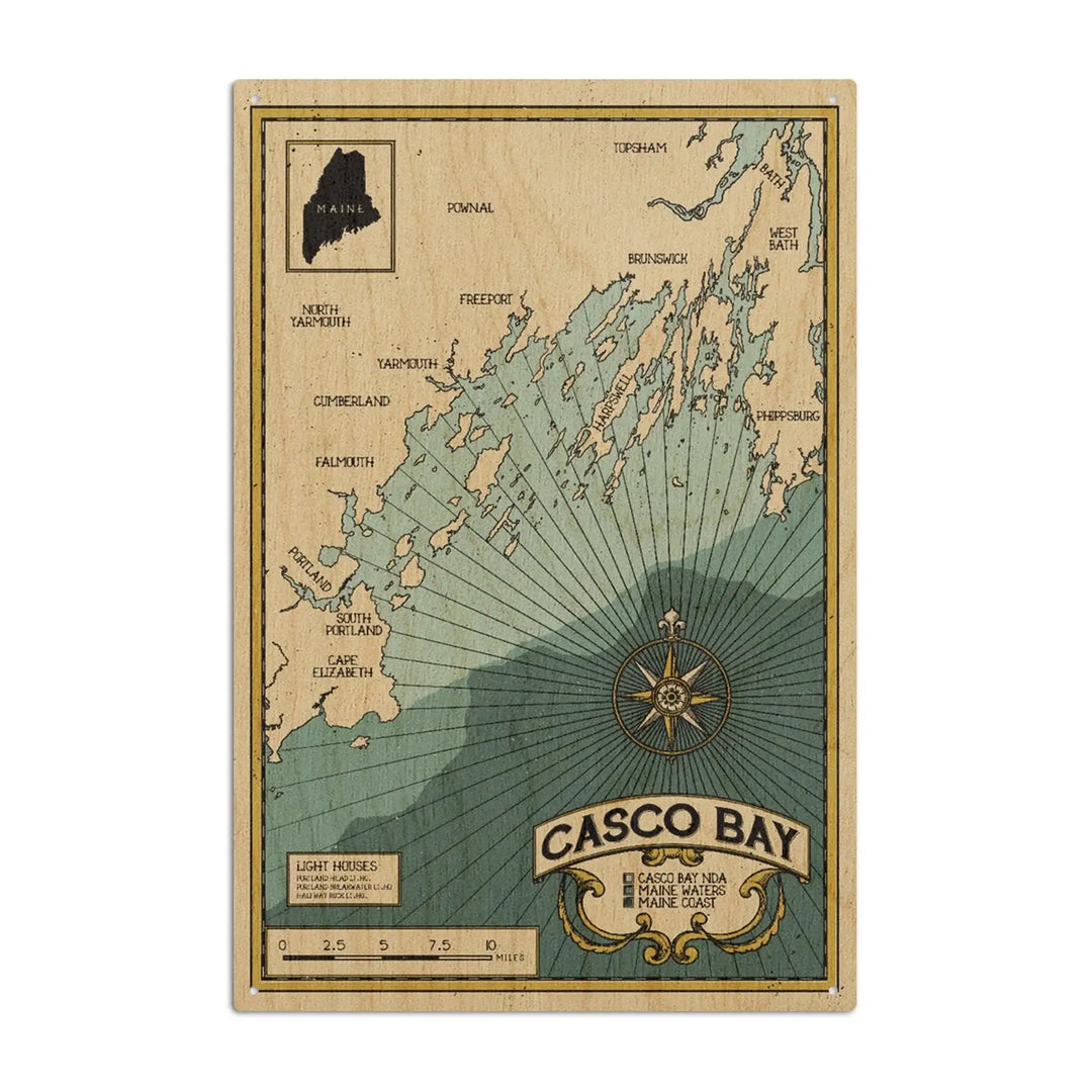 Casco Bay, Maine, Nautical Chart, Lantern Press Artwork, Wood Signs an