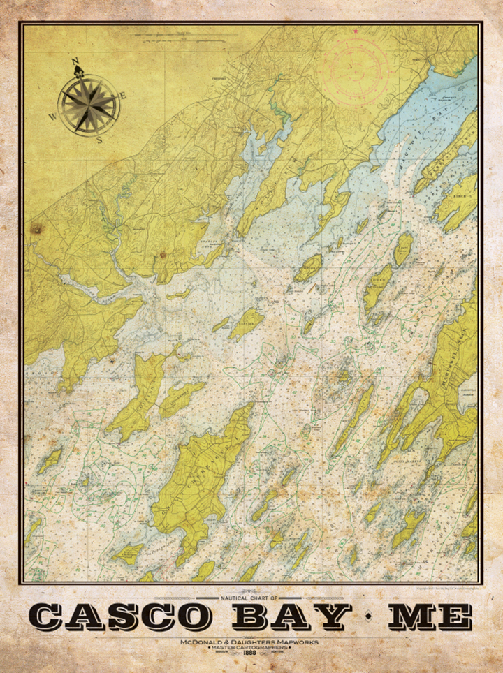 Casco Bay Nautical Chart โ LOST DOG Art & Frame
