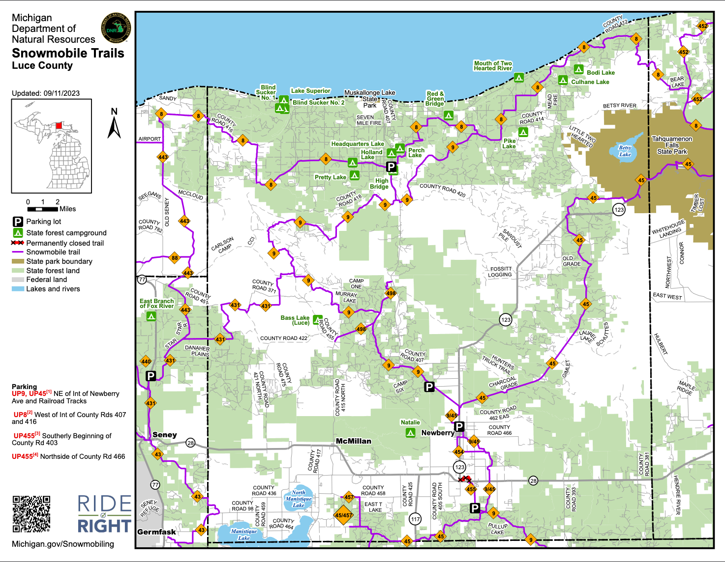 Newberry Michigan Maps Attractions, Snowmobiling and ATV