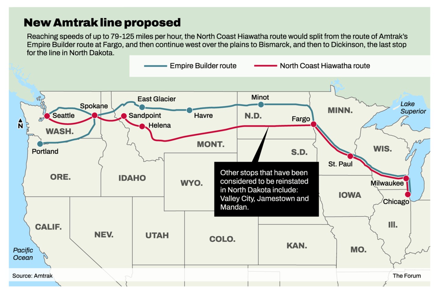 North Coast Hiawatha Map Amtrak North Coast Hiawatha: The Big Sky Passenger Rail Authority (BSPRA) has spent years gathering support from local, state and federal authorities to restore service to the North Coast Hiawatha Route. In December . Stapley mentioned that using 2025 dollars, cost estimates for the North Coast Hiawatha line would be high. BSPRA must work with multiple departments of transportation and local and tribal governments, .