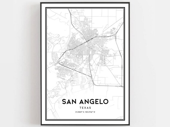 San Angelo Map Print, San Angelo Map Poster City Wall Art, Tx Road