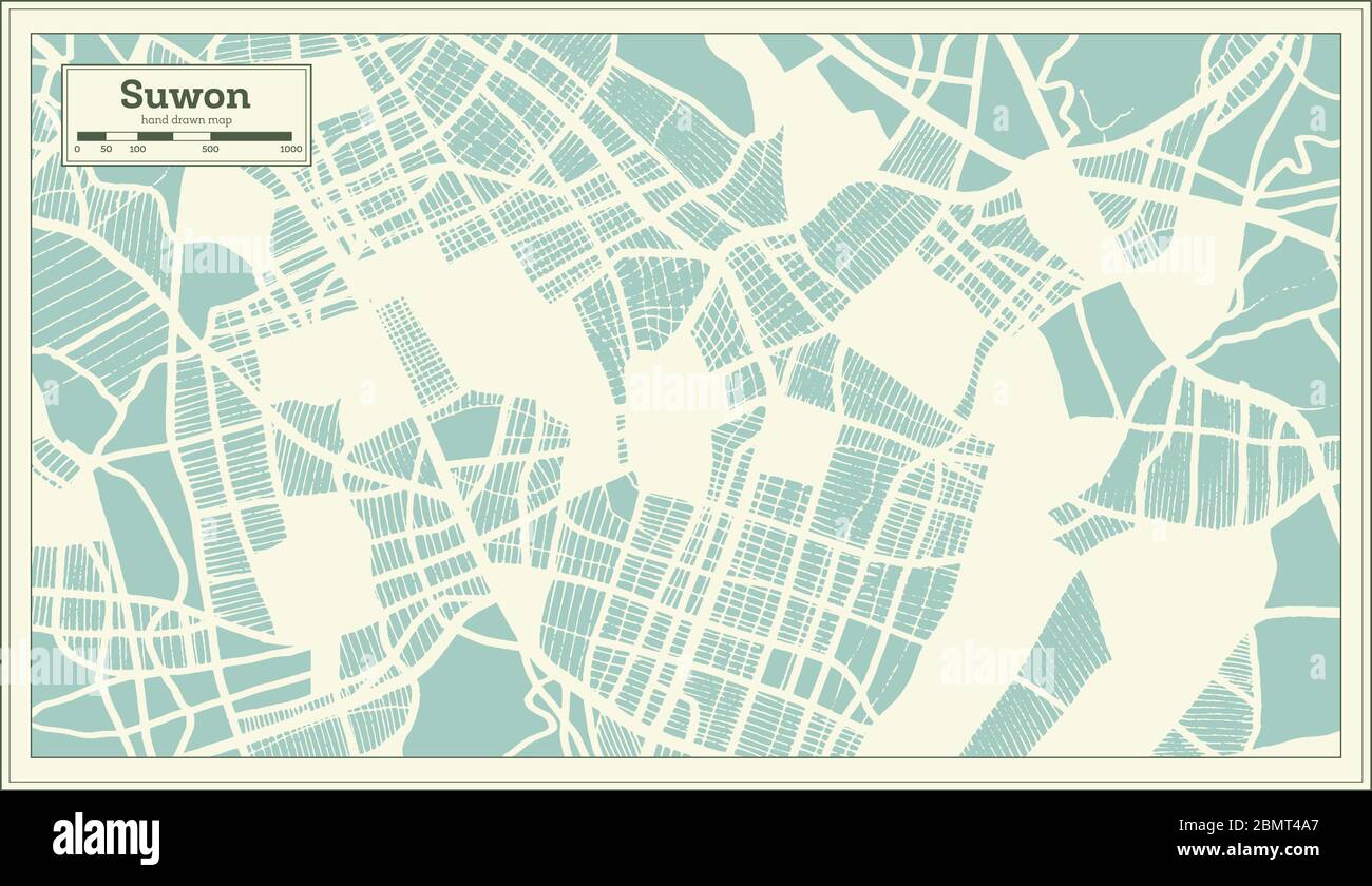 Suwon South Korea City Map in Retro Style. Outline Map. Vector
